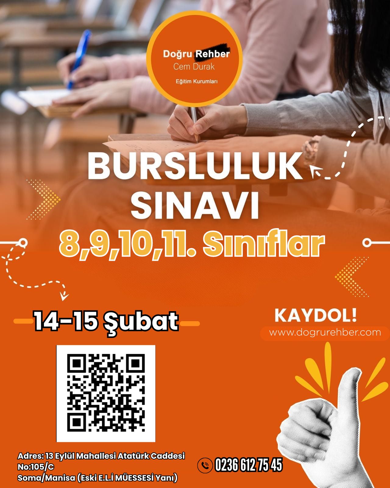 2026 yılı bursluluk sınavımız 14 Şubat Cumartesi ve 15 Şubat Pazar tarihlerinde gerçekleştirilecektir.
