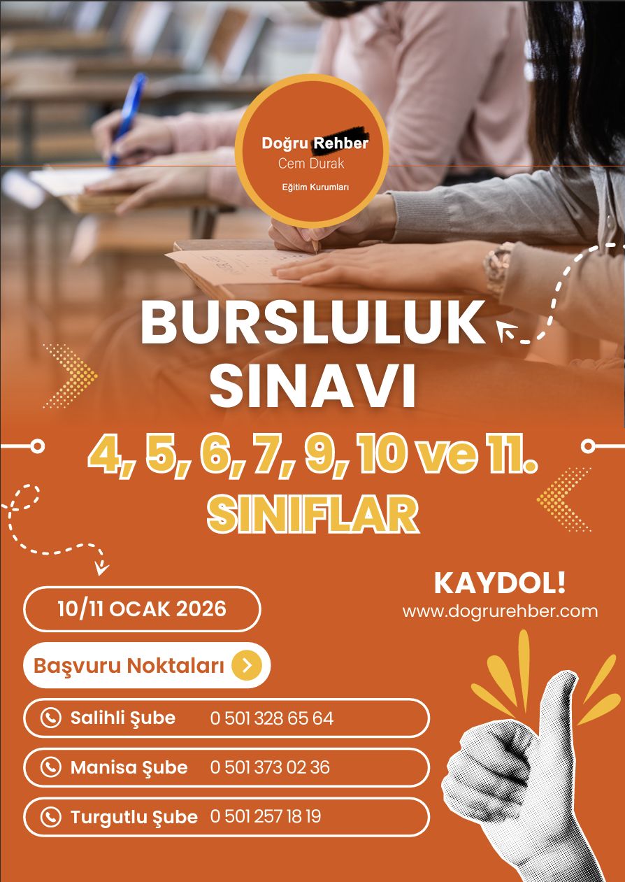 2026 Yılı bursluluk sınavımız 10 Ocak ve 11 Ocak 2026 tarihlerinde gerçekleşecektir.Bursluluk Sınavımıza İlkokul 4.sınıf,Ortaokul 5.,6. ve 7.sınıfta okuyan öğrencilerimiz ile Ortaöğretimde okuyan 9.,10. ve 11.sınıf öğrencilerimiz başvuruda bulunabilir.
